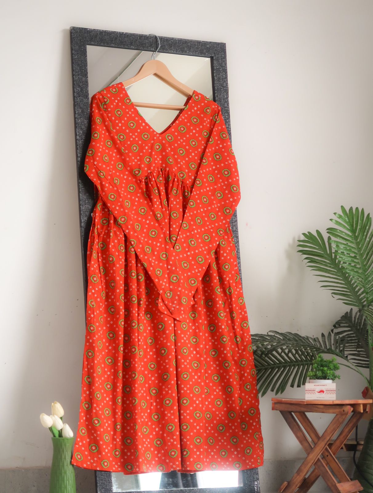 Kesariya Bandhej Alia Cut Chudidar Sleeves Long Kurta